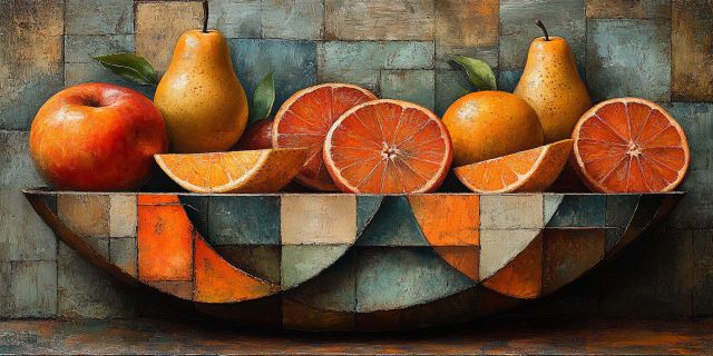 Title: Vibrant Still Life Canvas Print: Fruits in Harmony at Art's Table