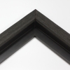 This equal stair step wood floater frame has a matte black finish. The canvas will hover neatly within the simple, modern border.