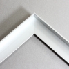 This small, L-shaped floating canvas frame in matte black features a brushed Silver face.