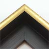 This small, L-shaped floating canvas frame in matte black features a brushed gold face.