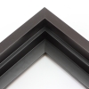 This equal stair step wood floater frame has a matte espresso finish. The canvas will hover neatly within the simple, modern border.