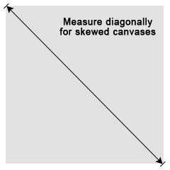 • To determine canvas size, measure horizontally and vertically along the outer edge of the canvas. This is where the material is thickest (due to the corner folds). This will give you the most accurate measurement.