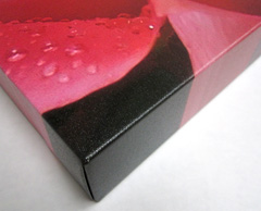 Plaque mounts are another popular and less expensive option to a frame, and are created by laminating a printed image on a fiberboard backing. They are durable and the bevelled edge can be painted any color to create a frame-like board without distractnig from the image.